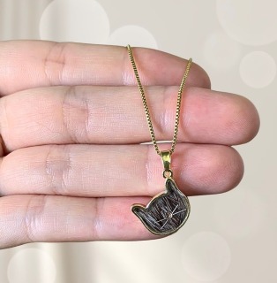 Pingente gatinho para DNA pet-banhado a ouro 18k (pingente+corrente)